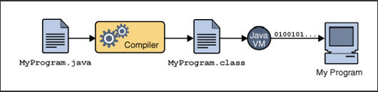 -> JVM(java.exe, JRE) -> 메모리상에서 기계어로 재 컴파일후 -> 실행