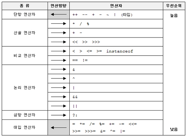 - 단항 연산자: 하나의 변수로 연산이 진행